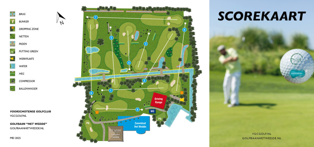 Welkom op de website van de Voorschotense Golfclub (VGC) en golfbaan Het Wedde in voorschoten! Met veel hindernissen en korte holes (max. 153m) is deze par-3 baan de perfecte baan om uw korte spel te verbeteren en uw handicap te verlagen!