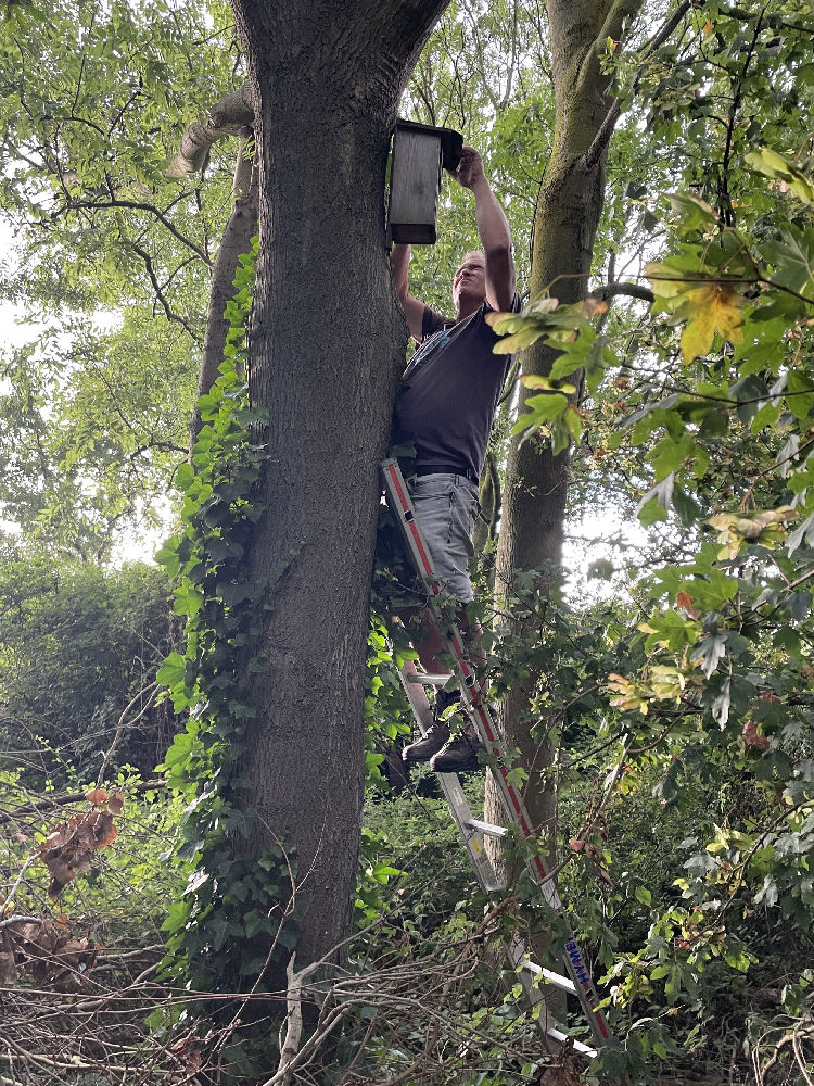 In 2025 was de helft van de kastjes bezet. Een gevonden dood vogeltje of een achtergebleven eitje ging voor onderzoek naar “Meet de Mees” (hsleiden.nl/onderzoeken/project/meet-de-mees).  Eind oktober dit jaar hebben we weer wat aanpassingen gedaan n.a.v. de broedresultaten van dit jaar.