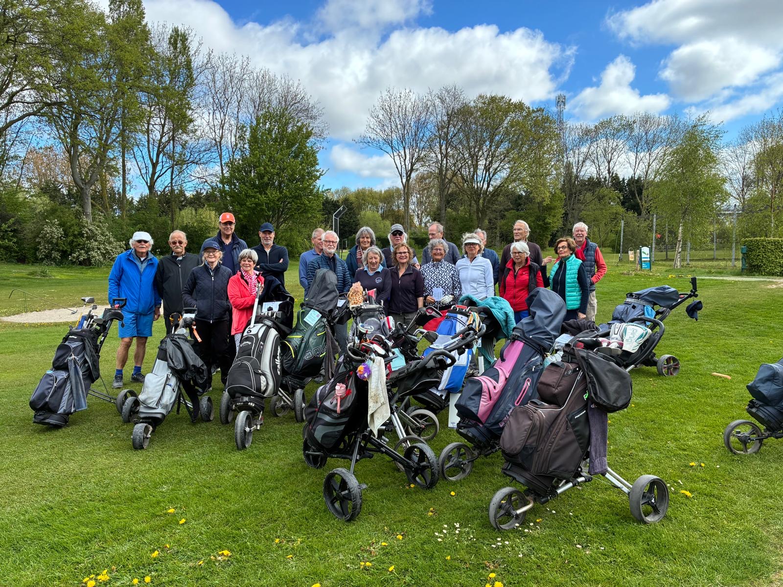 21 deelnemers aan de Cross Country van 19 april, met prachtig weer en voor vele nieuwe deelnemers benieuwd naar de ‘nieuwe baanindeling’.